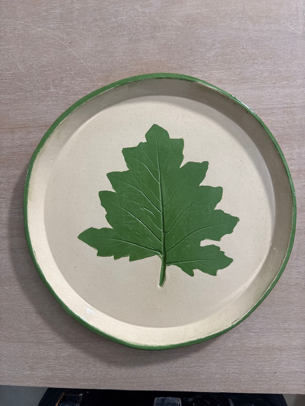 Assiette impression feuille verte