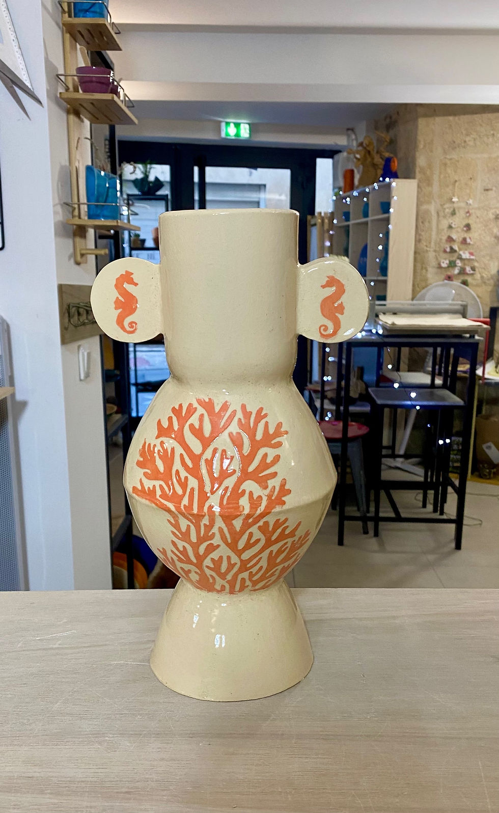 Lot de 2 assiettes bleues roi impression éventails (grande et moyenne)
